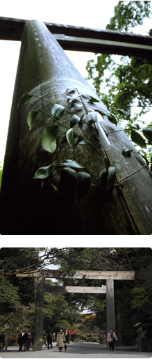 (ヒソプの枝で鴨居と門柱に小羊の血を塗るユダヤ人) (榊を結び付けた鳥居) 実は、聖書も神道も「贖罪」宗教であり、根本教理において共通した部分を持っている。 やはり両者は同根と見るべきではないだろうか。 2012/12/07 |